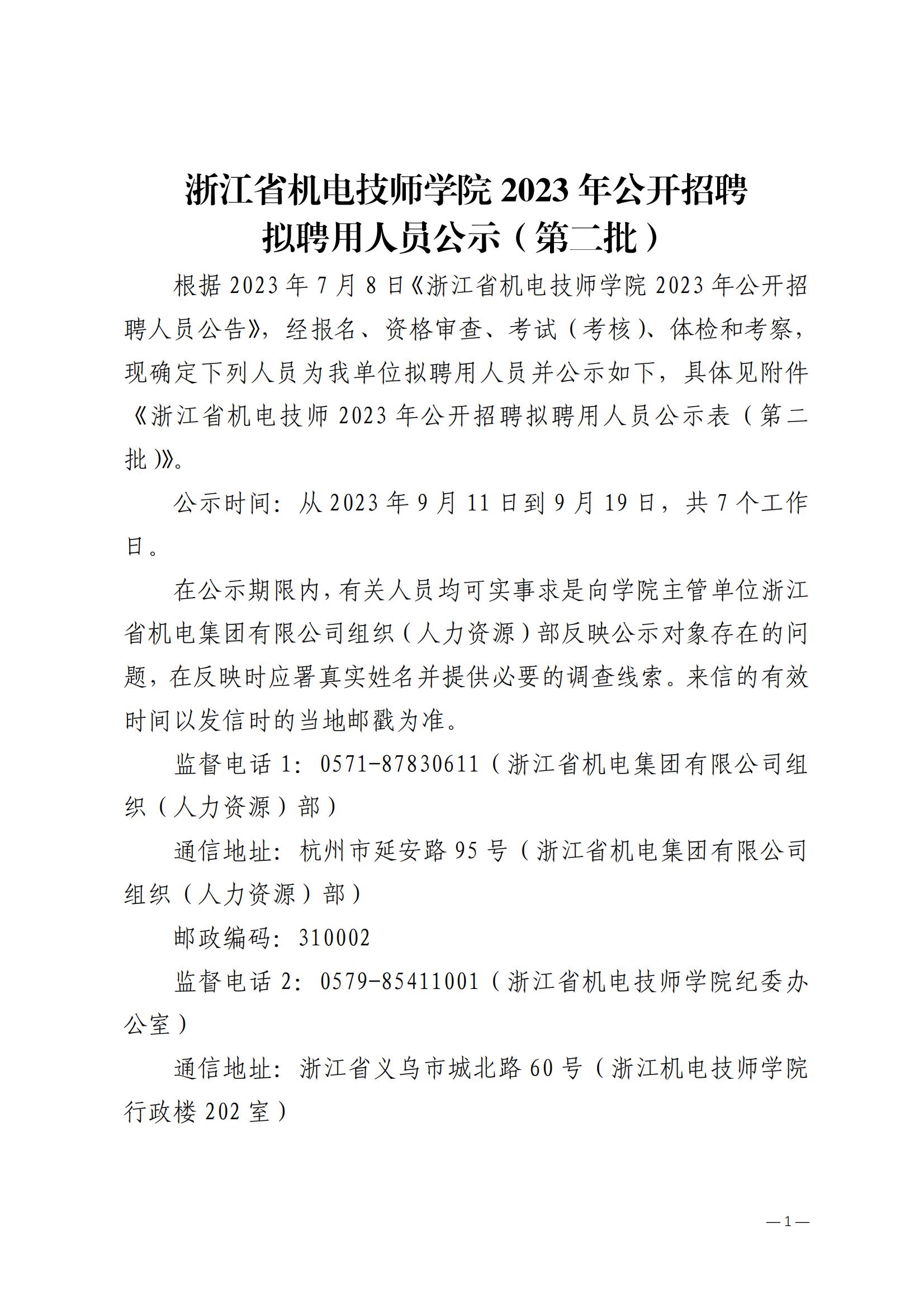 浙江省機電技師學院2023年(nián)公開(kāi)招聘拟聘用(yòng)人(rén)員(yuán)公示表(2023年(nián)第二批)