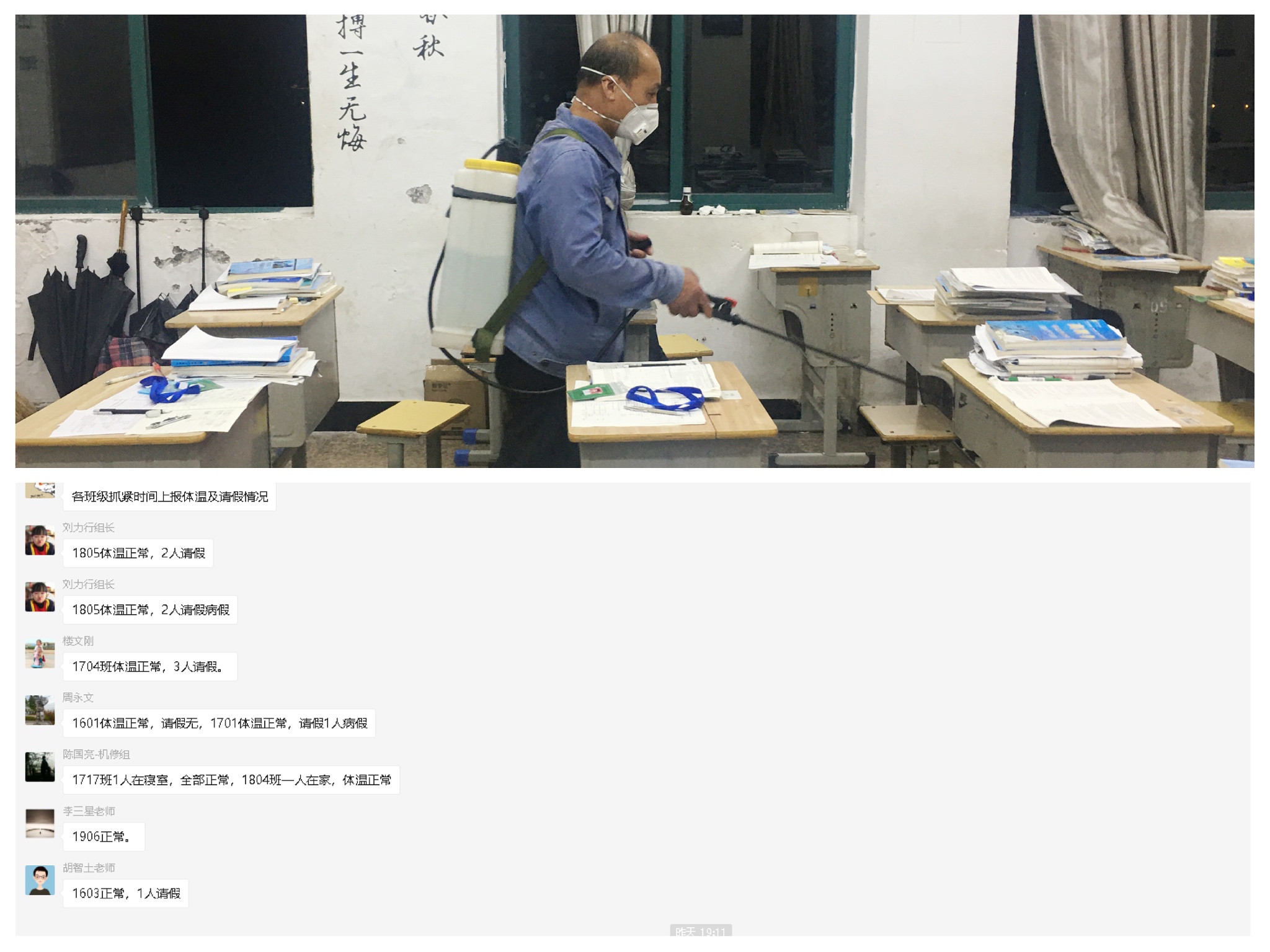 校(xiào)園重新恢複生(shēng)機(jī)與活力,防疫工(gōng)作(zuò)有(yǒu)序進行(xíng)。現(xiàn)代制(zhΩì)造系成立應急小(xiǎo)組,狠抓每個(gè)細節和(hé)關鍵環節。各班級每天三次定時(shí)測量體(tǐ)溫,測量結果由班主任←報(bào)送學管幹事(shì),切實做(zuò)到(dào)定人(rén)、定崗、定時(shí),落實、落細、落小(xiǎo),确保萬無一(yī)失。此外(wài),每兩天班級全面消毒一(yī)次•,确保學生(shēng)正常的(de)學習(xí)和(hé)生(shēng)活。