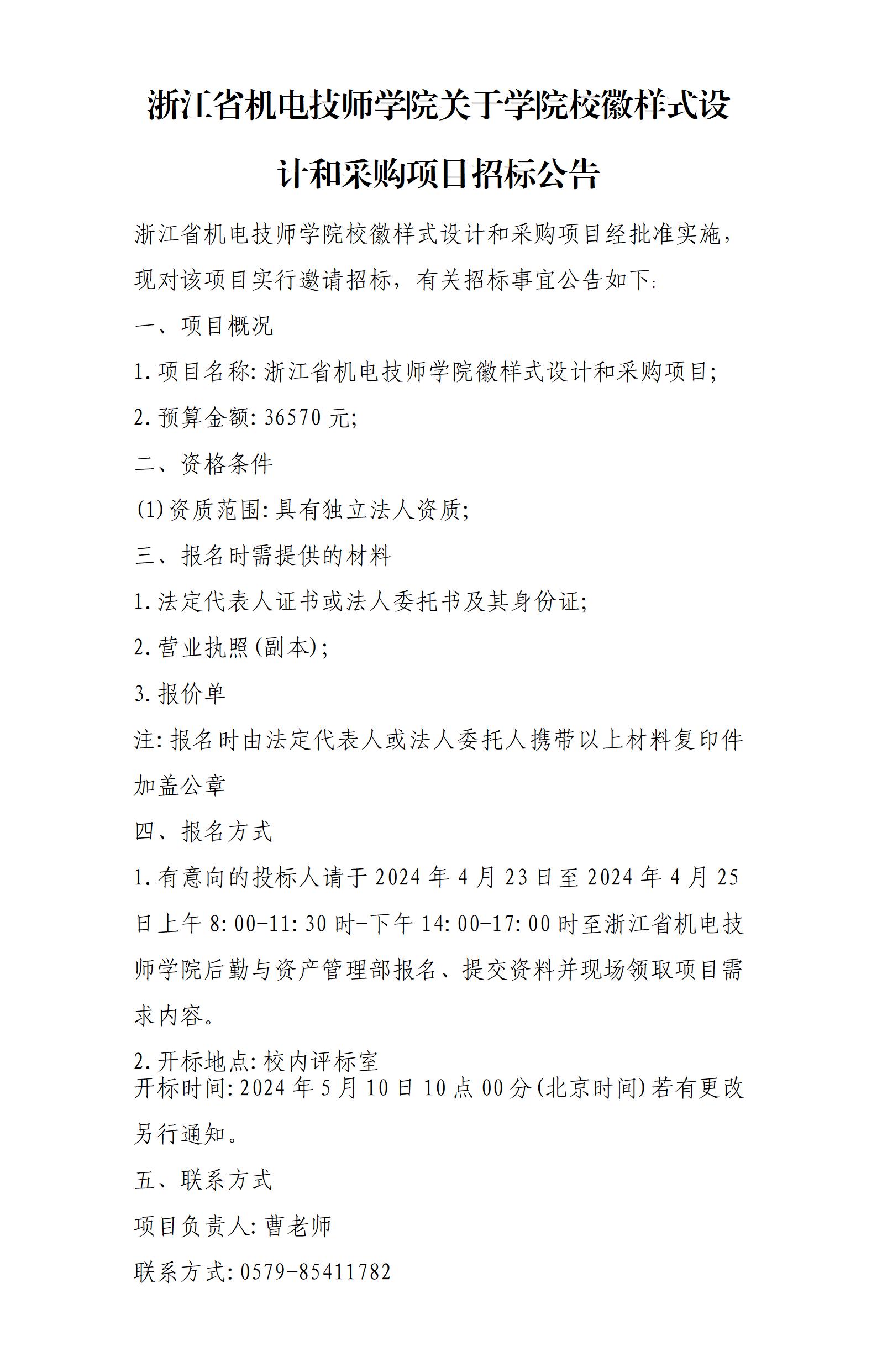 浙江省機電技師學院關于學院校(xiào)徽樣式設計(jì)和(hé)采購(gòu)項目議(yì)價結果公告
