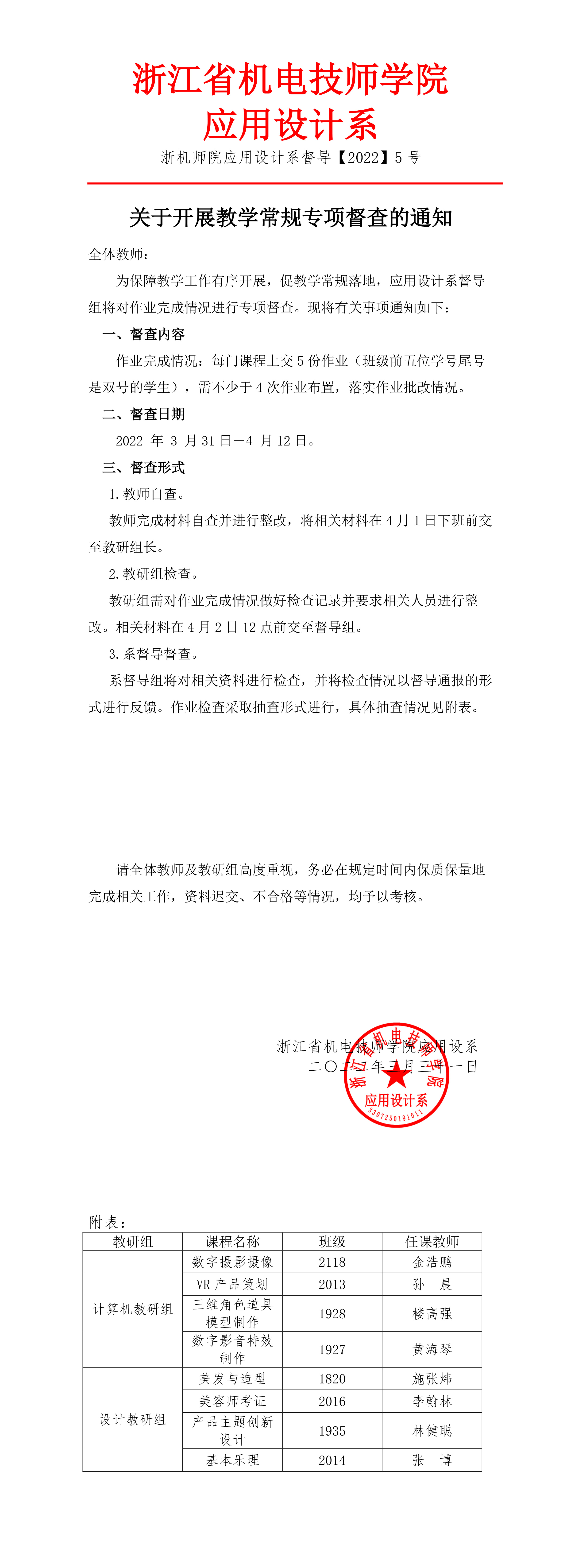 關于開(kāi)展教學專項檢查的(de)通(tōng)知(zhī)