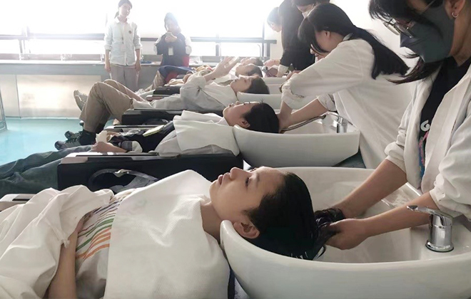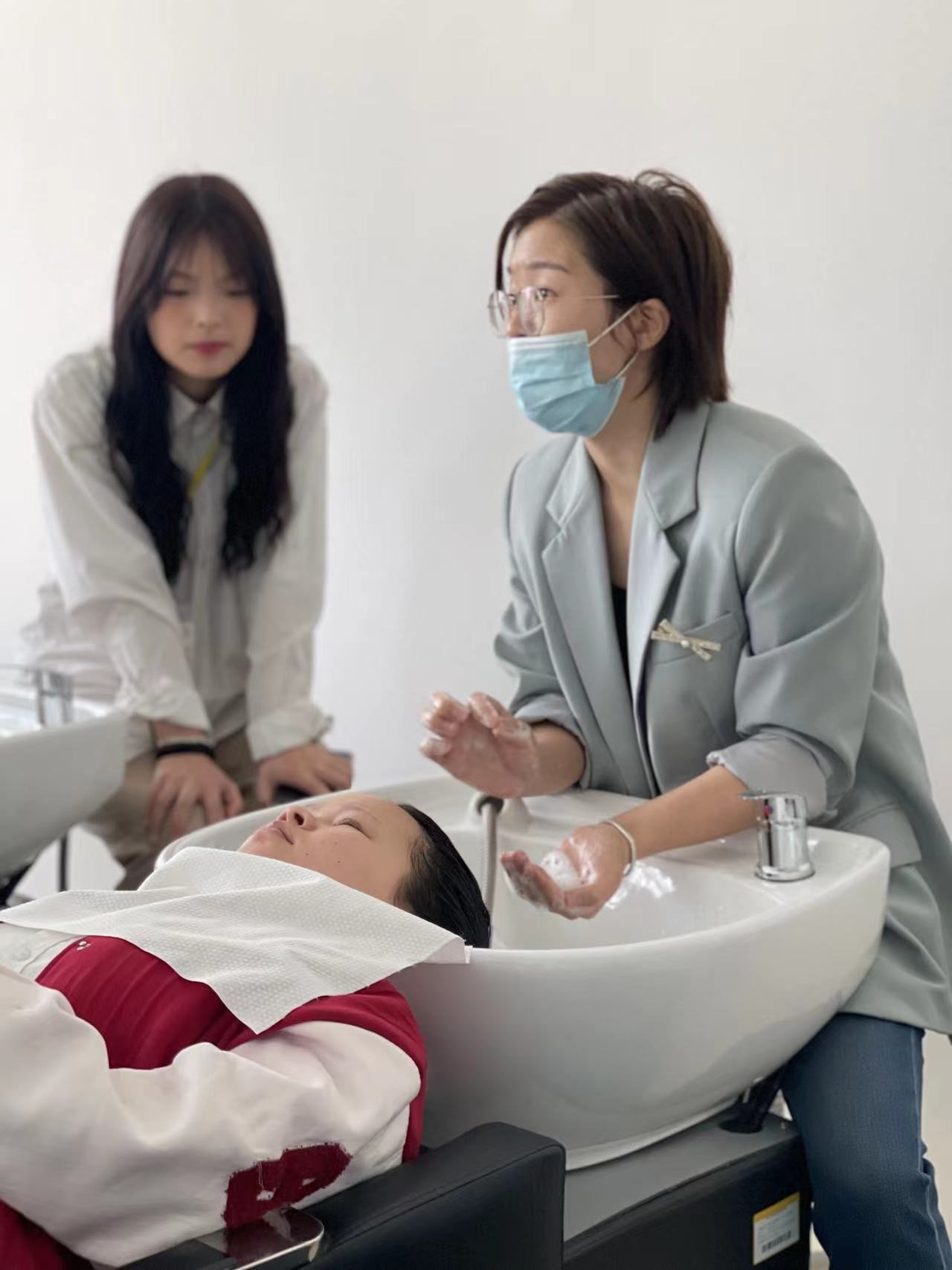 我院形象設計(jì)專業(yè)學生(shēng)在阿光(guāng)發型工(gōng)作(zuò)室進行(xín>g)洗頭實操練習(xí)。通(tōng)過企業(yè)導師(shī)的(de)嚴格、耐心指導和(hé)同學們一(yī÷)遍遍反複訓練學習(xí)到(dào)在學校(xiào)難以接觸的(de)實用(yòng)技(jì)能(néng),為(wèi)今後Ω的(de)就(jiù)業(yè)打下(xià)堅實基礎。