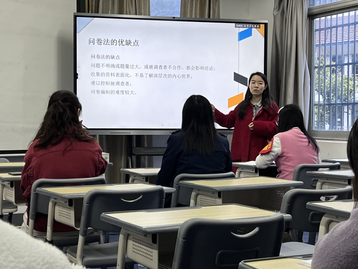 本次主題教研活動由朱芳、吳繪芹和(hé)程曉雪(xuě)老(lǎo)師(shī)三位老(lǎo)師(shī)主講。朱芳老(lǎo)師(shī)結合自(zì)身(shēn)的(de)論文(wén)寫作(zuò)過程中的(de)心得(de)體(tǐ)會(huì),從(cóng)如(rú)何選題、查閱期刊寫論文(wén)提綱、融課堂實例、降低(dī)查重率等方面進行(xíng)詳細分(fēn)享繪芹老(lǎo)師(shī)主要(yào)以課題選題出發,提出課題研究始于問(wèn)題老(lǎo)師(shī)們在日(rì)常教學中要(yào)善于對(duì)問(wèn)題進行(xíng)分(fēn)解,思考如(rú)何将問(wèn)題轉換為(wèi)課題研究并要(yào)立足課題研究、服務課堂教學;程曉雪(xuě)老(lǎo)師(shī)重點與大(dà)家(jiā)分(fēn)享了(le)課題研究的(de)重要(yào)方法——問(wèn)卷調查法,詳細講述了(le)如(rú)何在課題研究中設計(jì)好(hǎo)問(wèn)卷,服務課題調研。三位老(lǎo)師(shī)結合自(zì)己的(de)實踐經驗,從(cóng)不(bù)同角度對(duì)教科(kē)研論文(wén)撰寫及課題研究開(kāi)展與基礎組各位老(lǎo)師(shī)們進行(xíng)了(le)₹分(fēn)享和(hé)交流