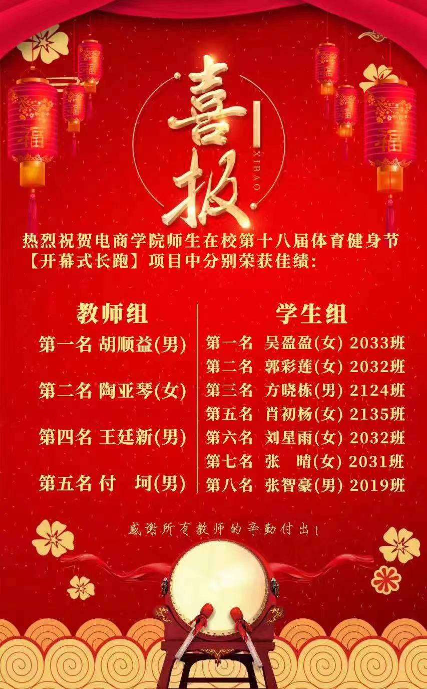 熱(rè)烈祝賀電(diàn)商師(shī)生(shēng)在體(tǐ)育健身(shēn)節“開(kāi)幕式長(cháng)跑”項目中榮獲佳績