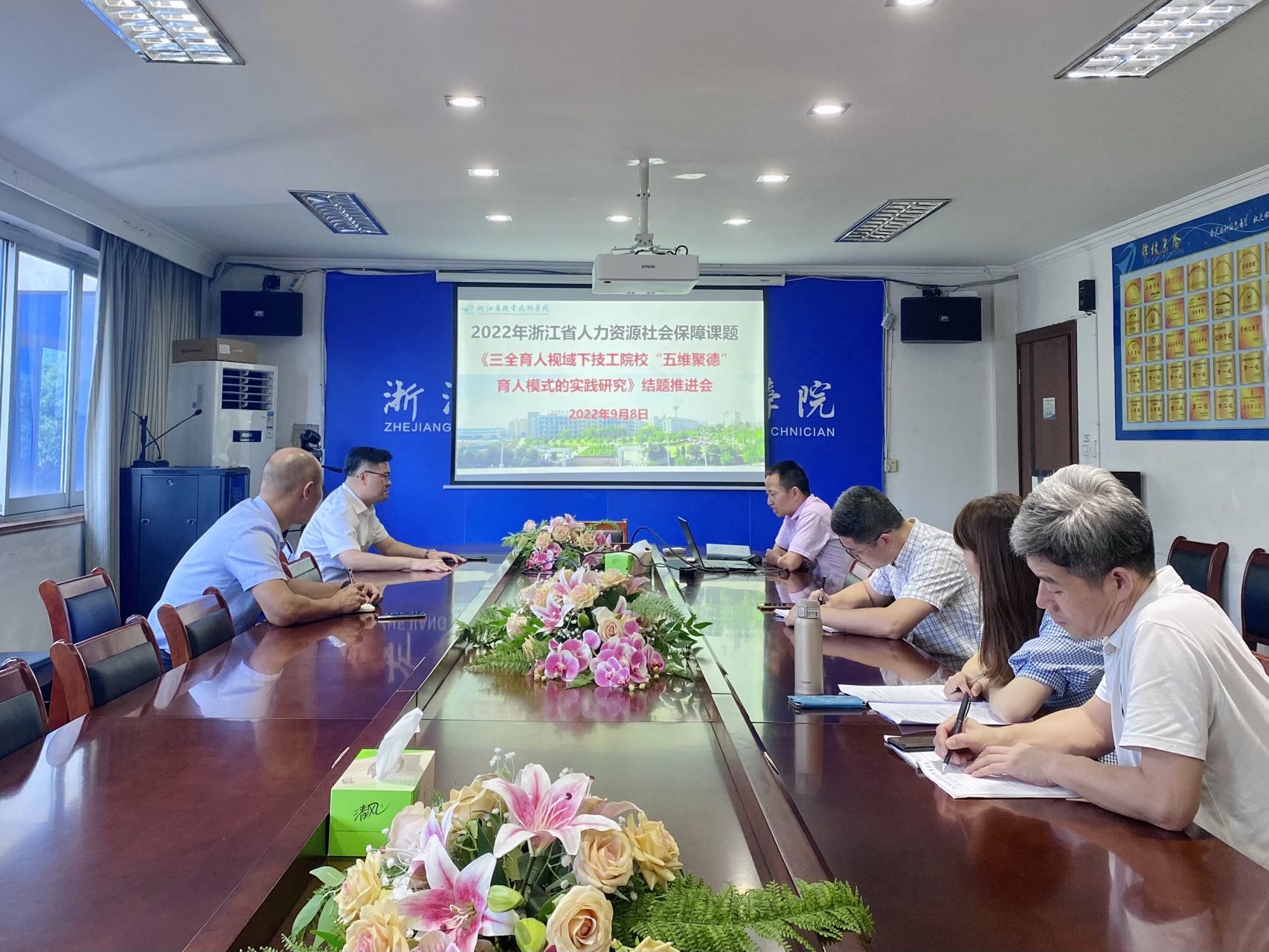 9月(yuè)8日(rì),為(wèi)有(yǒu)序推進2022年(nián)浙江省人(rén)力資源社會(huì)保障課題《三全育人(rén)視(shì)域下(↓xià)技(jì)工(gōng)院校(xiào)“五維聚德”育人(rén)模式的(de)實踐研究》的(de)結題工(gōng)作(zuò),教育研究所在行(xíng)政樓三樓↑會(huì)議(yì)室組織該課題結題研究推進會(huì)。學院黨委書(shū)記葉偉江、課題組全體(tǐ)成員(yuán)參會(huì),會(h"uì)議(yì)由教育研究所吳國(guó)獻老(lǎo)師(shī)主持。