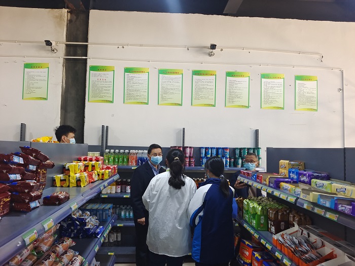 曹小(xiǎo)其、麻劍波兩位領導一(yī)行(xíng)先後對(duì)食堂的(de)食品加工(gōng)操作(zuò)區(qū)、食™材原料存放(fàng)區(qū)、樣品存放(fàng)區(qū)、售餐區(qū)等重點區(qū)域進行(xíng)了(le)實地(dì)走訪,詳細查看(kàn)食品安全管理(lǐ)責任的(de)落實情況,認真查閱食品原材料的(de)入庫記錄,特别是(shì)針對(duì)食 堂的(de)食品加工(gōng)衛生(shēng)、環境保潔消毒等情況做(zuò)了(le)重點檢查,并對(duì)£存在的(de)問(wèn)題提出了(le)整改意見(jiàn)。在學院超市(shì),他(tā)們詢問(wèn)工(gōng)作(zuò)人(rén)員(yuán)店(diàn)內(nèi)食品的(de)進貨渠道(dào)、儲存方式、商品價格等問(wèn)題,特别強調要(yào)确保疫情期間(jiān)超市(shì)物(wù)資儲備充足。