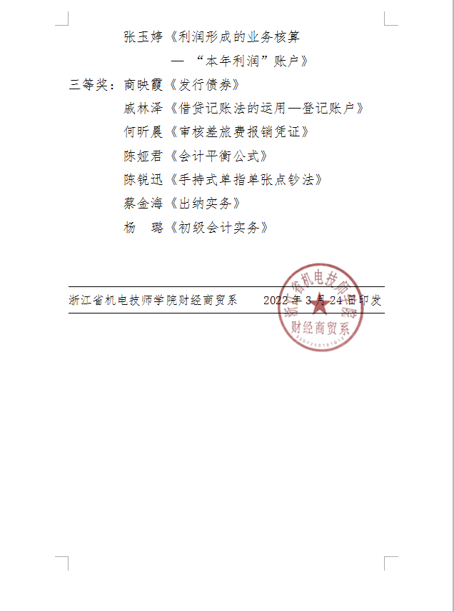 關于公布财經商貿系2022年(nián)“創新杯” 會(huì)計(jì)專業(yè)信息化(huà)說(shuō)課評比結果的(de)通(tōng)知(zhī)