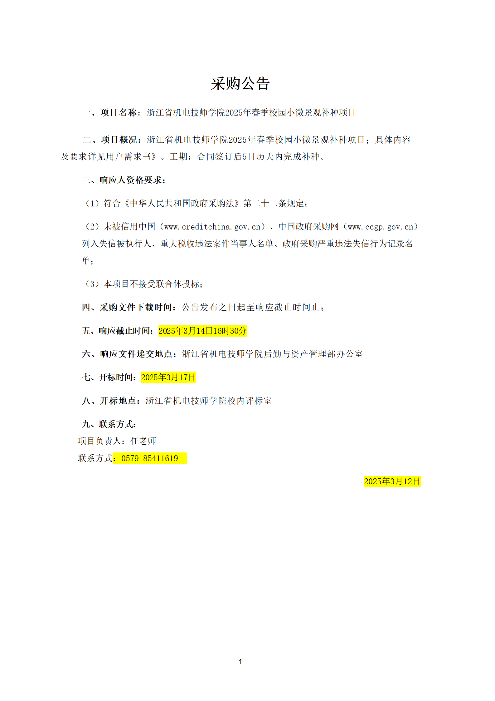 浙江省機電技師學院2025年(nián)春季校(xiào)園小(xiǎo)微(wēi)景觀補種項目采購(gòu)招标公告