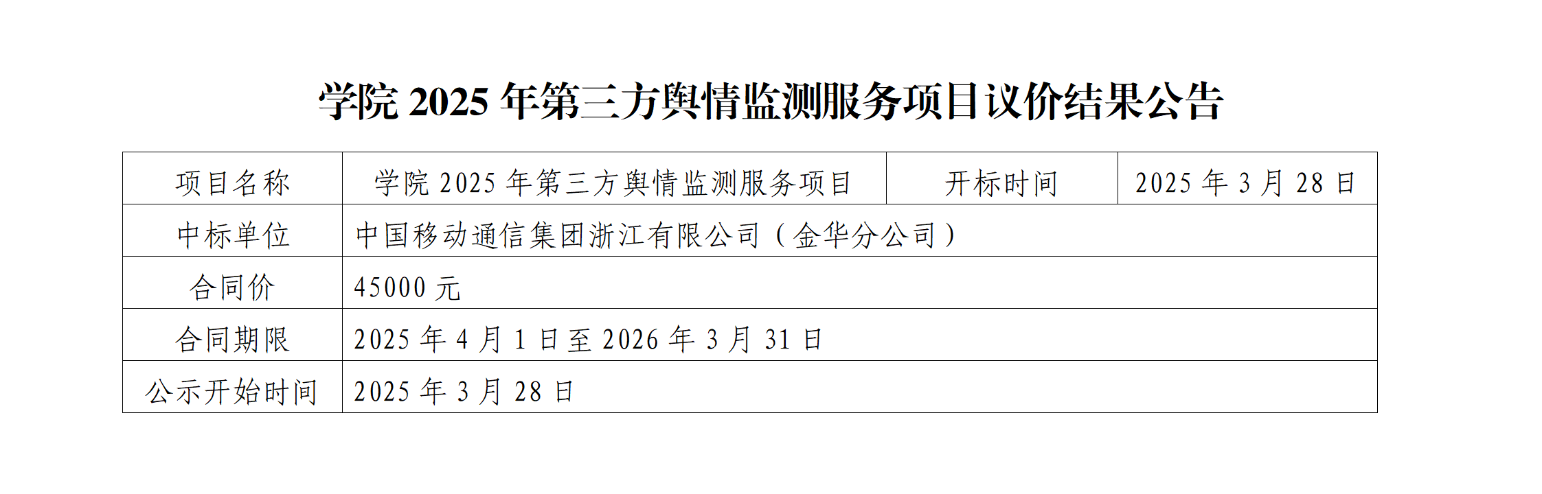 學院2025年(nián)第三方輿情監測服務項目議(yì)價結果公告