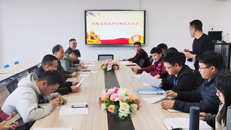 3月(yuè)25日(rì),機(jī)電(diàn)系全體(tǐ)黨員(yuán)會(huì)議(yì)在新大(dà)樓二樓召開(kāi)。會(huì)議(yì)主要(yào)圍繞深入學習(xí)貫徹習(xí)近(jìn)平新時(shí)代中國(guó)特色社會(huì)主義思想、學習↕(xí)十九屆五中全會(huì)精神、慶祝建黨100周年(nián)和(hé)黨史教育等內(nèi)容展開(kāi)。