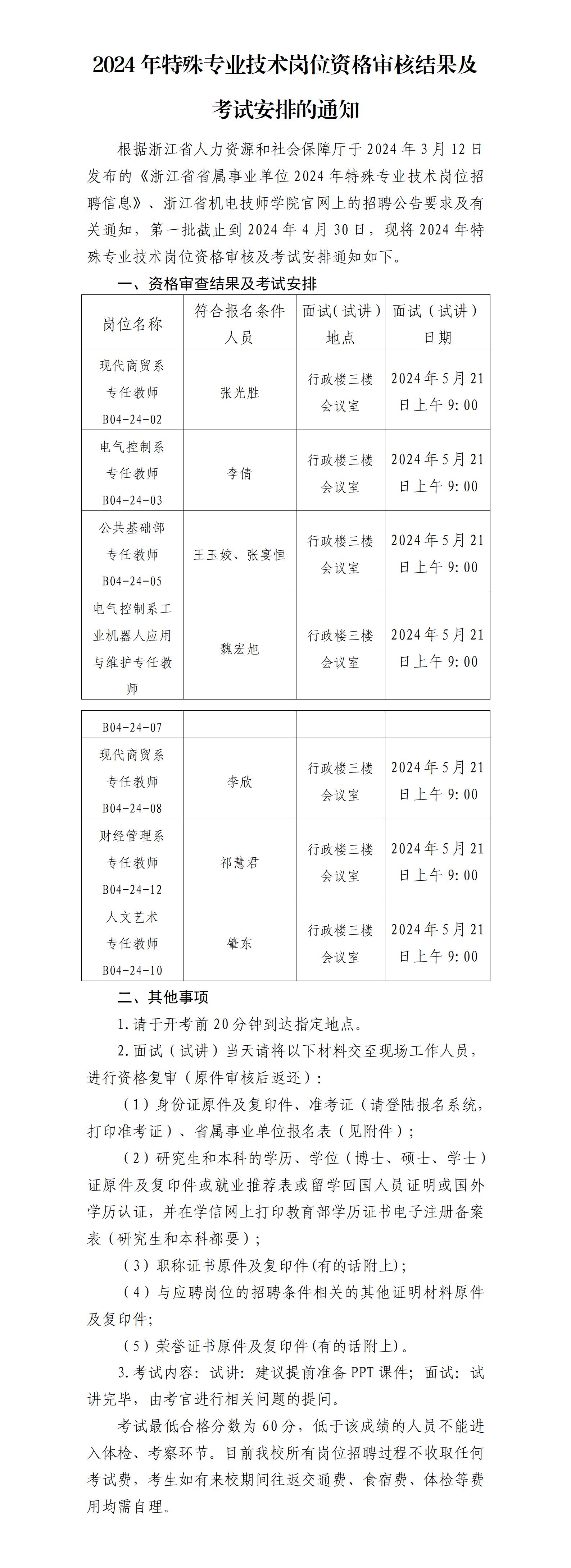 2024年(nián)特殊專業(yè)技(jì)術(shù)崗位資格審核結果及考試安排的(de)通(tōng)知(zhī)