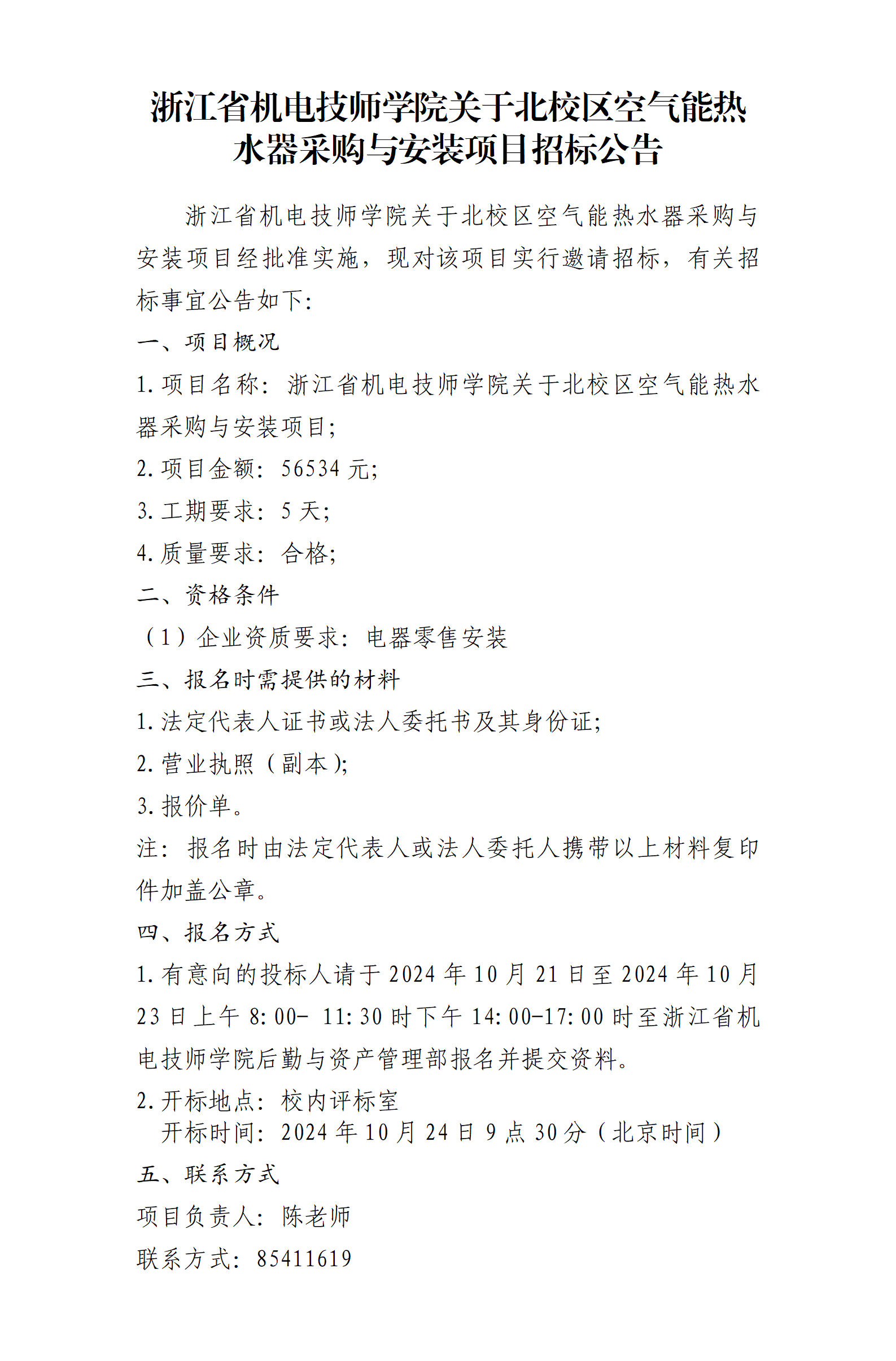 浙江省機電技師學院關于北(běi)校(xiào)區(qū)空(kōng)氣能(néng)熱(rè)水₽(shuǐ)器(qì)采購(gòu)與安裝項目招标公告