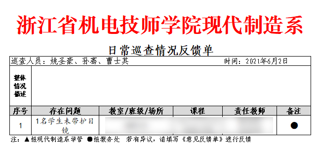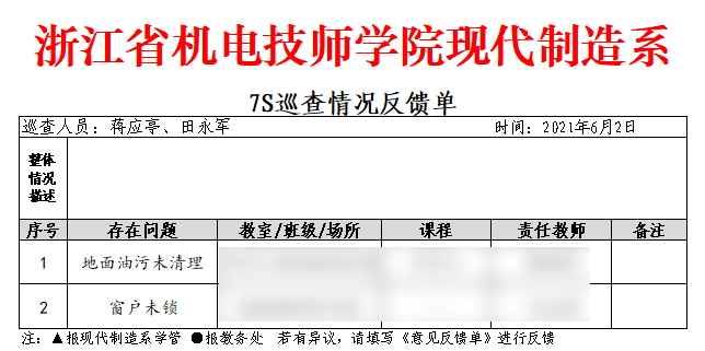 按照(zhào)《2020學年(nián)第二學期現(xiàn)代制(zhì)造系督導工(gōng)作(zuò)計(jì)劃》要(yào)求,我δ系開(kāi)展系列專項督查工(gōng)作(zuò)。