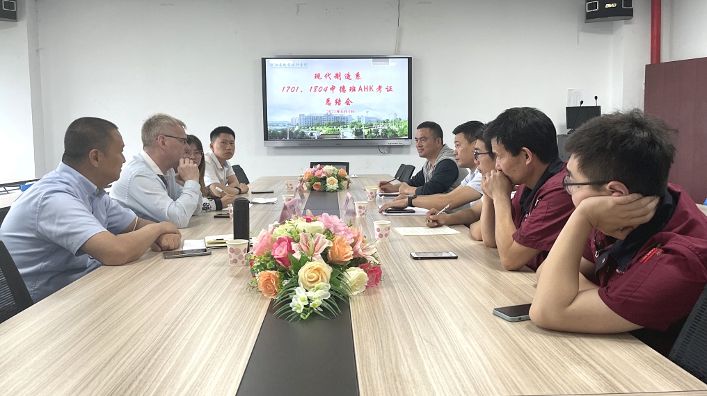 6月(yuè)4日(rì),現(xiàn)代制(zhì)造系1701、1804中德班AHK考證總結會(huì)于系部會(huì)議(yì)室召開(kāi)。此前,來(lái)自(zì)德國(guó)的(de)專家(jiφā)Christoph (克裡(lǐ)斯)莅臨我系,根據歐盟技(jì)師(shī)班1701、1804的(de)教學進度情況,≠以AHK考證為(wèi)中心,以考證評分(fēn)為(wèi)标準,進行(xíng)理(lǐ)論及實際操作(zuò)指導,幫助學生(shēng)有(yǒu)效加工(gōng)工($gōng)件(jiàn),糾正不(bù)規範操作(zuò)。會(huì)議(yì)上(shàng),雙©方就(jiù)歐盟技(jì)師(shī)班教育的(de)模式及理(lǐ)念進行(xíng)了(le)深入的(de)討(tǎo)論、交流,為(w®èi)專業(yè)教學改革創新起到(dào)了(le)良好(hǎo)的(de)示範作(zuò)用(yòng),推進了(le)中✔德合作(zuò)項目的(de)進一(yī)步開(kāi)展