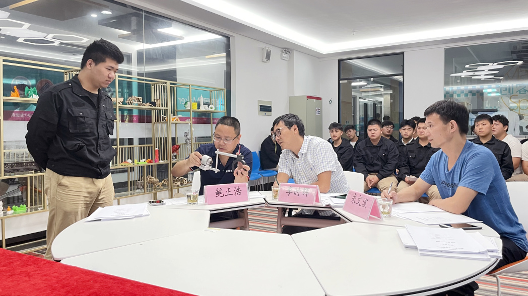 答(dá)辯會(huì)的(de)評審委員(yuán)由上(shàng)海(hǎi)博米實業(yè)有(yǒu)限公司台灣資深"設計(jì)師(shī)王谷天教授、浙江省首席技(jì)師(shī)、浙江省大(dà)師(shī)工(gōng)作(zuò)室領銜人(rén)、義烏市(shì)同心圓科(kē)技(jì)有(×yǒu)限公司技(jì)術(shù)總監王關根、浙江省首席技(jì)師(shī)、義烏市(shì)易開(kāi)蓋實業(yè)公司技¶(jì)術(shù)研發室副主任宋連墨、義烏市(shì)工(gōng)商職業(yè)技(jì)術(shù)學院教授李時(shí)輝、義烏市(shì)國(guó)際商貿學校(xiào)汽修€工(gōng)匠(jiàng)學院院長(cháng)鮑正浩、學院教授孫麗(lì)霞、現(xiàn)代制(zhì)造系骨幹教師(shī)施尚★軍、劉力行(xíng)、陳國(guó)亮(liàng)、任常富、朱文(wén)波組成。