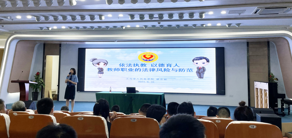 6月(yuè)16日(rì),學院廉政警示教育專題講座于公共實訓大(dà)樓三樓音(yīn)樂(yuè)廳舉辦,特邀義烏市(shì)檢察院樓壯麗(lì)同志(zhì)作(zuò)《依法執教 以德育人(rén)" 教師(shī)職業(yè)的(de)法律風(fēng)險與防範》主題宣講。全體(tǐ)黨員(yuán)聆聽(tīng)講座。