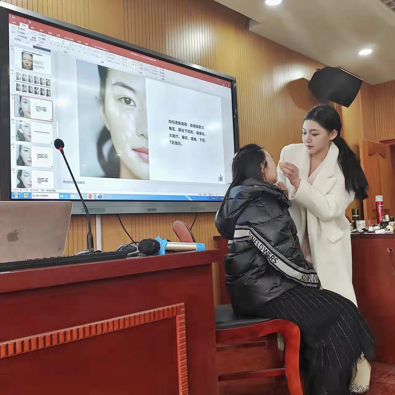 形象設計(jì)專業(yè)師(shī)生(shēng)赴教育工(gōng)會(huì)、太平洋壽險、東(dōng)河(hé)學校(xiào)開(k∞āi)展化(huà)妝培訓活動。黨員(yuán)教師(shī)朱麗(lì)青、施張炜精心準備,帶領學生(shēng)參加技α(jì)能(néng)實踐服務,分(fēn)别赴信息光(guāng)電(diàn)學院和(hé)太平洋壽險義烏公司開(k★āi)展講座和(hé)化(huà)妝技(jì)巧培訓活動;青年(nián)教師(shī)吳承芮赴東(dōng)河(hé)小(xiǎo)學開(↔kāi)展教師(shī)形象培訓活動,從(cóng)外(wài)在形象,即容貌、化(huà)妝、穿著(zhe),到(dào)教師(shī)的(de)規範坐(zuò)姿、✔站(zhàn)姿、行(xíng)姿,為(wèi)大(dà)家(jiā)帶來(lái)精彩講座。
