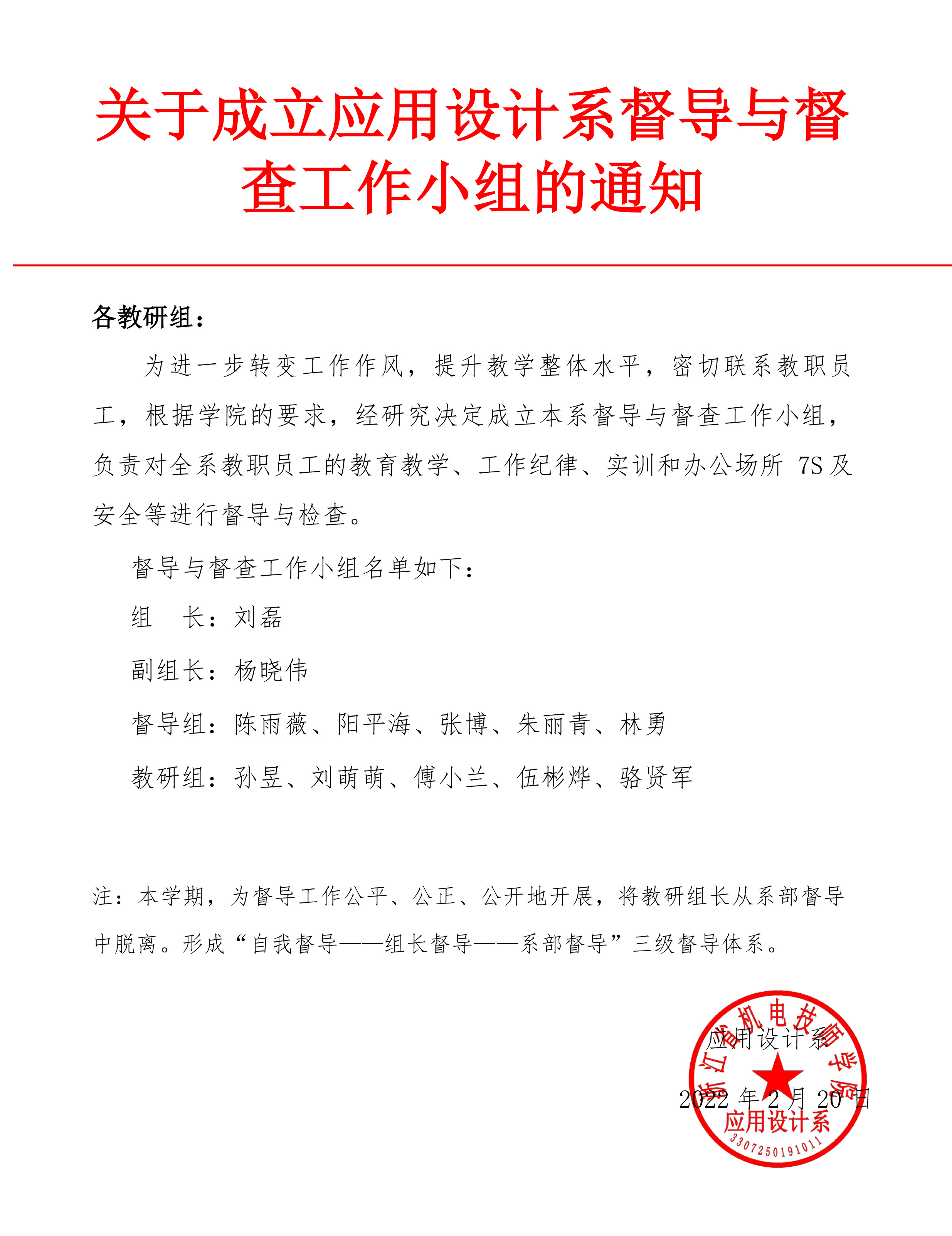 關于成立應用(yòng)設計(jì)系督導與督查工(gōng)作(zuò)小(xiǎo)組的(de)通(tōng)知(zhī)