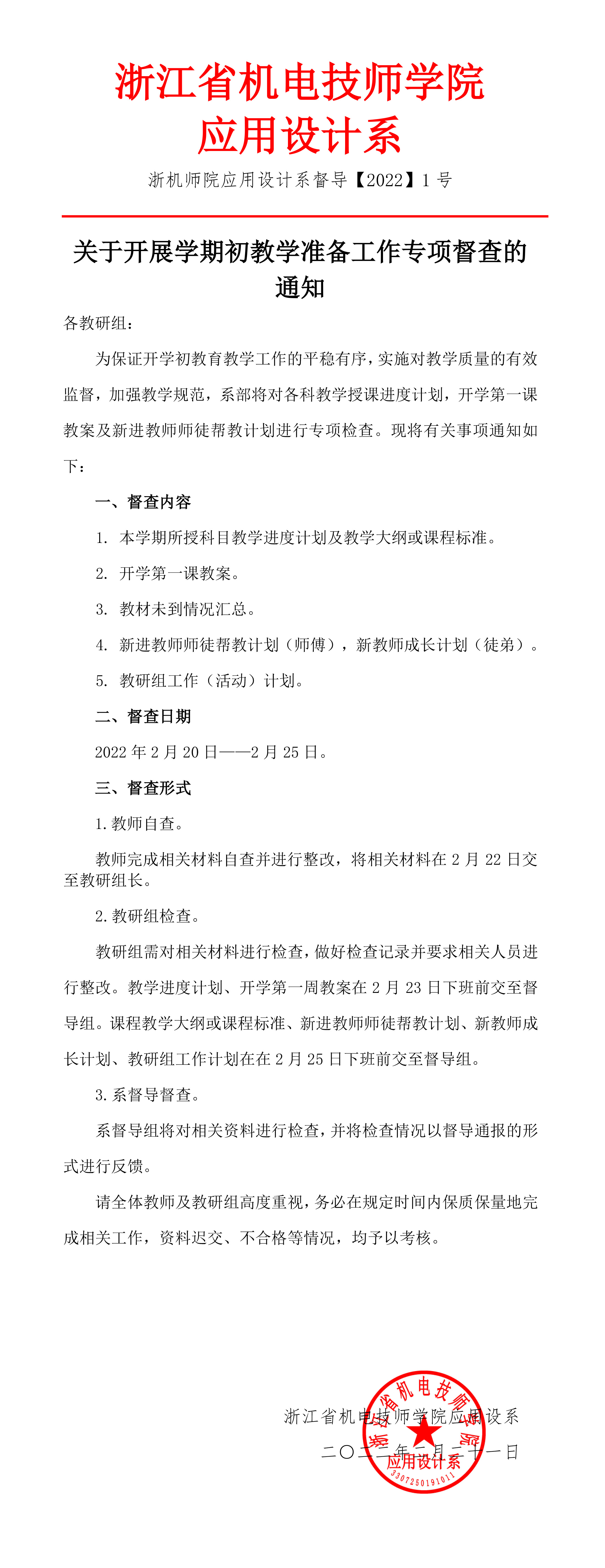 關于開(kāi)展教學專項檢查的(de)通(tōng)知(zhī)